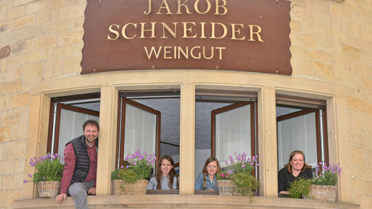 Der Niederhäuser Jakob Schneider wird durch den Vinum Weinguide 2026 als „Winzer des Jahres“ an der Nahe gefeiert. Darüber freuen sich auch Ehefrau Laura sowie die Töchter Johanna und Julia. Norbert Krupp