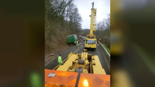 Für die Bergung musste die B 41 voll gesperrt werden Sebastian Schmit