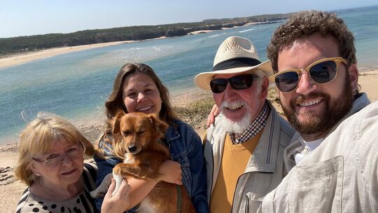 Oliver Kneip mit seinen Eltern und seiner Frau Stephanie Kolkmann sowie Hund Tobi in Vila Nova de Milfontes, Portugal. Oliver Kneip