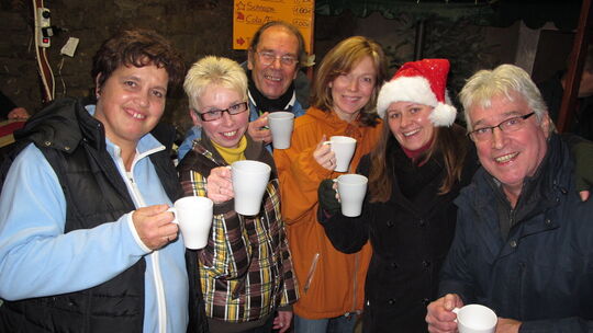 Der gmeischte Chor "Sängerlust" um Vorsitzende Anka Bender schenke beim Weihnachtsmarkt guten Glühwein aus: (von links) Heike Zukowski, Marion Brumm, Erwin Metzler, Marianne Laukötter, Nadine Steinbrecher und Jürgen Disselhoff. Stefan Munzlinger