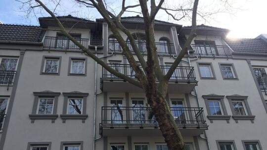 Die Platane hat die schwierige Baugeschichte der Wohnanlage Solitär überstanden, vor Gericht geht der Streit jetzt weiter. Foto: Christine Jäckel