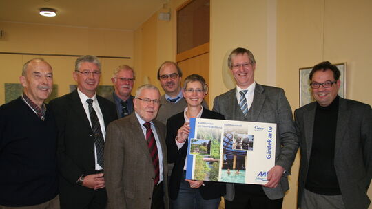 Die Kurstädte Bad Kreuznach und Bad Münster am Stein-Ebernburg haben ab 1. Januar eine gemeinsame Gästekarte: Werner Bolfing vom Verkehrsverein Rheingrafenstein, RNN-Geschäftsführer Wolfgang Hammermeister, Harald Weber von der Kreuznacher Verkehrsgesellschaft, Gerhard Schläfer, Frank Kaldenbach (beide Verkehrsverein), Anna Roeren-Bergs, Beigeordneter Wolfgang Heinrich und GuT-Geschäftsführer Michael Vesper (von links) stellten sie jetzt vor. Harald Gebhardt