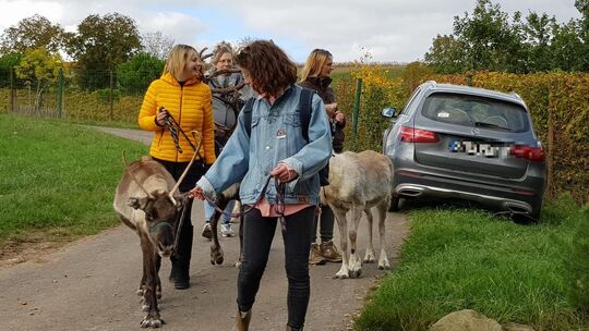 Ein Spaziergang mit den Rentieren der Niederhäuser Rentieralm entschleunigt. Nürnberg Josef. Josef Nürnberg