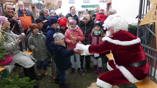 Mit großen Augen betrachteten die Kinder den Blickpunkt-Nikolaus, der alle Kinder mit süßen Tüten erfreute, die Mitglieder der Werbegemeinschaft Blickpunkt gefüllt hatten. Roswitha Kexel