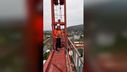 Nils Brendel inspiziert hier einen Kran der KBD Krantechnik aus Waldalgesheim auf seine Sicherheit. Jens Fink. KBD Krantechnik GmbH Waldalgesheim