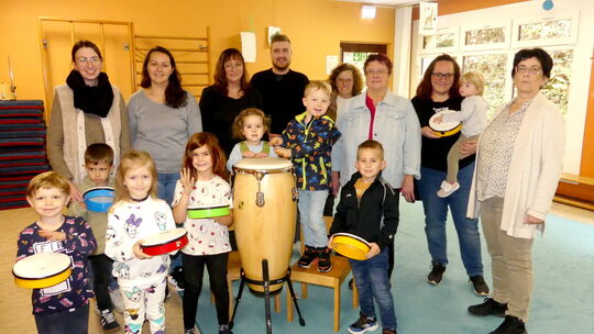 Nachdem sich der Odenbacher Chor aufgelöst hat, wurde entschieden, einige Utensilien der Kita für deren Musikstunden zu schenken. Darunter auch eine große Röhrentrommel.
