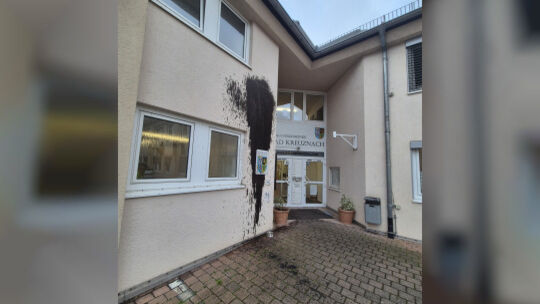 In der Nacht von Montag, 10. November, auf Dienstag, 11. November, wurde auf das Verwaltungsgebäude der Verbandsgemeinde Bad Kreuznach ein Ölanschlag verübt. Darüber informiert die VG-Verwaltung in einer Pressemitteilung. Unbekannte Täter haben die Fassade, Teile des Eingangsbereichs und einen Dienstwagen mit einer ölhaltigen Substanz großflächig verunreinigt.