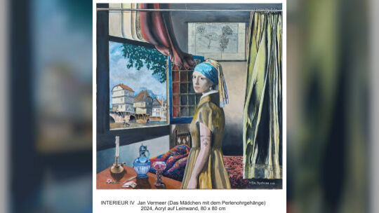 Aus Trautmanns "Interieur"-Reihe: "Das Mädchen mit dem Perlenohrgehänge" nach Jan Vermeer; Acryl auf Leinwand, 2024 Peter Trautmann