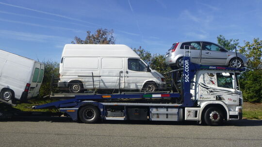Polizei stoppt Autotransporter in Sprendlingen: Giftige Stoffe sollten in Schrottautos nach Afrika gebracht werden