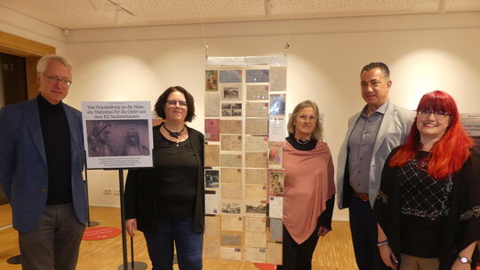Institutsleiter Peter Oliver Loew (von links) und Ausstellungs-Projektiererin Julia Röttjer vom Deutschen-Polen-Institut vor den Briefen, die Dorit Frick aus Durchroth der Ausstellung als Schenkung überlassen hat. Daneben Oberbürgermeister Emanuel Letz und Sarah Förster, Mitarbeiterin im Haus der Stadtgeschichte. Jens Fink