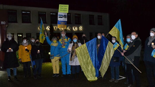 Reden zum „Krieg gegen die Demokratie“: Mahnwache für Ukraine in Langenlonsheim