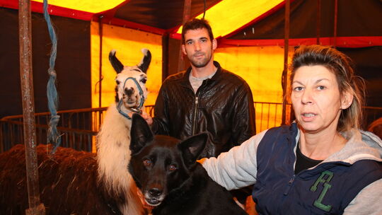 Rotarier greifen der Zirkusfamilie, hier mit Monja Rojan und Sohn Romano, unter die Arme.