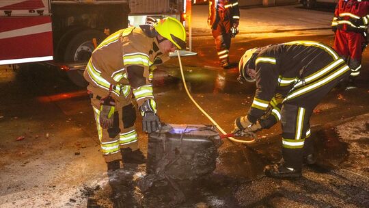 Der erste Einsatz im neuen Jahr führte in die Steinenbergstraße: Eine 120-Liter-Mülltonne stand in der Neujahrsnacht in Flammen. Sebastian Schmitt