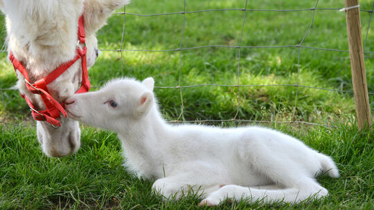 Sensation auf Rentieralm: Muttertier bringt weißes Kälbchen Mika zur Welt