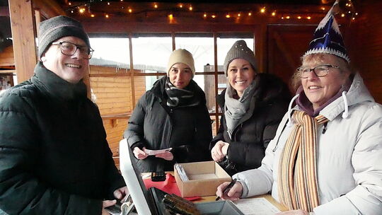 Der frühere Vorsitzende Dirk Haas, Mitwirkende Natascha Caseday und Julia Ammann sowie Sitzungspräsidentin Petra Neumann (von links) und die Vorsitzende Franziska Weyand (nicht im Bild) haben gut lachen: Fast alle Karten für die Kappensitzung gingen im Vorverkauf weg. Christiane Lautenschläger