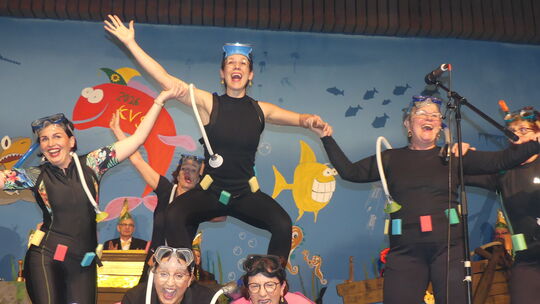 In der Gustav-Pfarrius-Halle in Guldental feierten die Narren der Sunneblum ihre Kappensitzung – bei bester Stimmung tauchten alle auf den Meeresgrund ab.