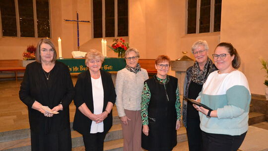 Besonders dankte Pfarrerin Noreen Weyl (rechts) den Gründungsmitgliedern: Pfarrerin Ute Bock (von links), Doris Coutandin, Jutta Hundt, Margit Henn und Thea von Rüden. Dieter Ackermann