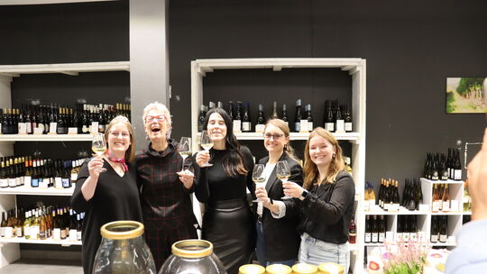 Naheweinprinzessin Laura Ludwig (links) und das Team von Weinland Nahe stießen auf das gute Gelingen an. Rainer Gräff