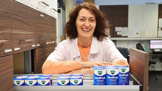 Helga Koch ist eine von rund einem Dutzend Mitarbeitern der Nahetal-Apotheke in Bad Kreuznach. Hier sieht man sich für die Erkältungssaison gut aufgestellt, weiß aber auch: Das meiste kommt erst noch. Markus Kilian