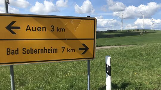 In drei Wochen soll der Windpark Pferdsfeld komplett ans Netz gehen. Die ersten beiden Rotoren laufen bereits.