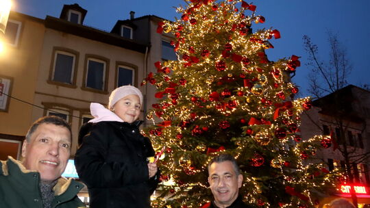 Der Kornmarkt erstrahlt im Glanz eines riesigen Weihnachtsbaumes. Melody (10) entzündet symbolisch 1000 Lichter und eröffnet damit feierlich die Adventszeit in Bad Kreuznach.