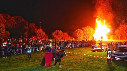 Wenn St. Martin gefeiert wird, ist Kirn auf den Beinen: Mehrere Hundert Kinder, Eltern und Großeltern folgten am Sonntagabend dem traditionellen Martinszug. An der Spitze ritt Reiterin Xenia Schrick (22) aus Löllbach als St. Martin auf ihrem Pferd Melia.