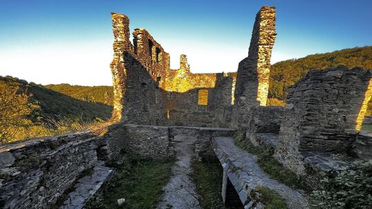 Der Palas der Schmidtburg an einem September-Abend kurz vor Sonnenuntergang. Hier wohnten die Burgherren und -damen. Robert Neuber