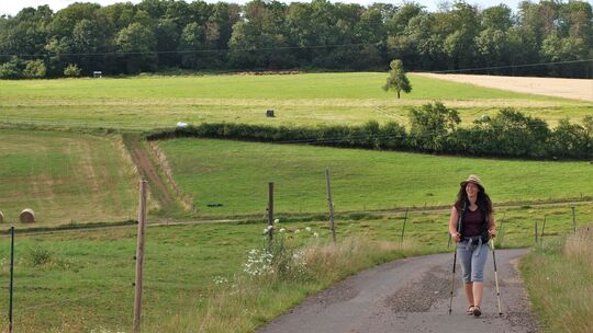 In Sevenich hängt ein Strauß mit Kräutern am Schild, seit sich Hoffmann auf ihre ganz eigene Walz begeben hat. Seit einigen Wochen ist die Heilkundlerin auf „Kräuterwalz“. Bis Oktober will sie vom Hunsrück aus zu Fuß Italien erreicht haben.