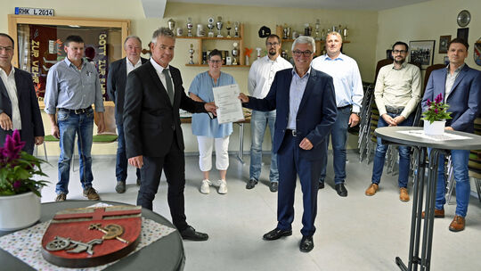 Im alten Gemeindehaus empfing Ortsbürgermeister Jürgen Olbermann gemeinsam mit Ratsmitgliedern das begehrte Dokument. Mit 1,16 Millionen sind die Kosten für den neuen Gemeindemittelpunkt veranschlagt. Angesichts steigender Bau- und Materialkosten rechnet man jedoch bei der Endabrechnung mit einem höheren Preis.