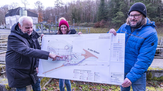 Jürgen Jakob (links) vom Planungsbüro Siekmann + Partner erläuterte das Bauvorhaben im Detail. Bauleiter ist Thorsten Stumm, und für die Hauptbauüberwachung ist Eva Kramb verantwortlich. Thomas Torkler