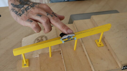 Auf einem von einem Hersteller gesponsorten Parcour übt Alex Christ bei sich zuhause verschiedene Tricks mit den Fingerboards. Lara Kempf