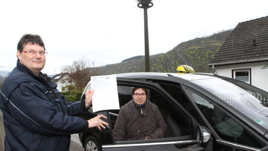 In seinem Formular notiert Taxifahrer Reinhold Stein seine Andi-Taxi-Fahrten. Fahrgäste wie Angelika Feigl, die in St. Goar-Fellen wohnt und dank Andi-Taxi zum Arztbesuch nach St. Goar gefahren wird, profitieren vom Ruf-Taxi.