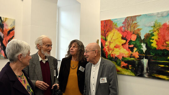 In opulenten Farben hat Karl Kaul (2. von links), Gründer und Senior der Hauderer, den herbstlichen Wald auf seinem Gemälde verewigt. Dupuis Werner. Werner Dupuis