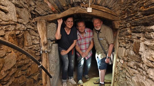 Massiv gemauerte Gewölbe entdeckten Kerstin Rudat und ihr Mann Frank Schneider zusammen mit Heimathaus-Betreiber Winfried Wagner (rechts) beim Umbau des Jägerhof-Ensembles. Die historische Bausubstanz wird bei den Baumaßnahmen erhalten. Werner Dupuis