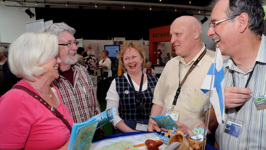 Berthold Paul (rechts), der Simmerner Finnland-Experte, begrüßte an seinem Stand bei der „Hi!R“-Messe zahlreiche Nordland-Fans Werner Dupuis