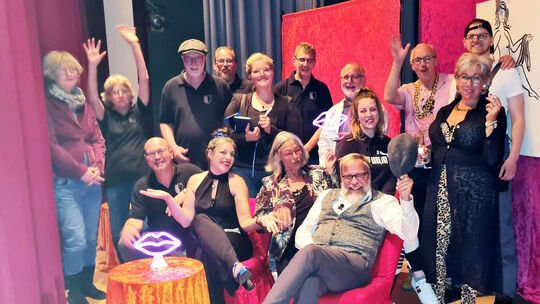 Das Ensemble hat es sich in der schummrigen Rotlichtbar von Madame Babette gemütlich gemacht. Dieter Diether