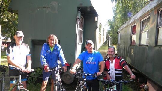 Diese Vierer-Gruppe aus Rhens machte in den vergangenen Jahren bei ihrer Radtour regelmäßig am Pfalzfelder Bahnhof Station. Sie und viele andere bedauern das Ende der gastronomischen Nutzung. Fotos: Wolfgang Wendling