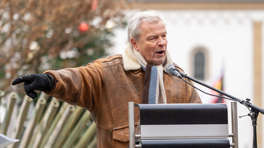 Urs Mergard aus Schöneberg war einer der Redner bei der Demonstration gegen den weiteren Ausbau der Windkraft im Hunsrück und der Region, die in Boppard stattfand. Marc Schenten