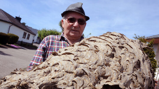 Rheinböllen - Ein riesiges Wespennest, über 75 Zentimeter lang und gut 50 Zentimeter im Durchmesser, kam beim Renovieren der Veranda bei der Familie Escher in Rheinböllen zu Tage.