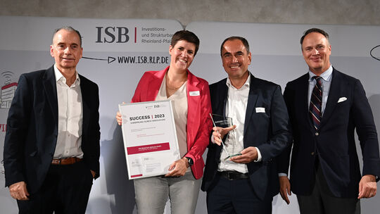 Katja und Ingo Kistermann (Mitte) wurden in Mainz beim diesjährigen Technologiewettbewerb „Succes“ für die Entwicklung ihrer Software Blupassion ausgezeichnet. Diese soll jetzt in großem Umfang auf den Markt gehen. Foto: ISB|Kristina Schäfer ISB|Kristina Schäfer