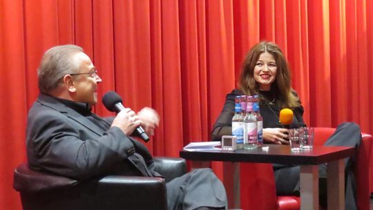 Dorothee Oberlinger beim 27. Simmerner "Stadtgespräch" im Pro-Winzkino mit Günter Müller-Rogalla, dem Intendanten des Staatsorchesters Rheinische Philharmonie. Claus Ambrosius
