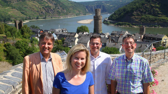 Beste Aussichten für Oberwesel: Lena Höver ist die neue Stadtmanagerin und Leiterin der Tourist-Information. Ihr zur Seite stehen (von links) Stadtbürgermeister Jürgen Port sowie Roland Schmelzeisen und Christian Jäckel vom Oberweseler Gewerbeverein. Foto: Suzanne Breitbach.