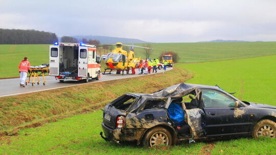 Gemünden. Zwei Verletzte und ein Schwerverletzter - das ist die schreckliche Bilanz eines Verkehrsunfalls auf der B 421 zwischen Gemünden und Dickenschied, der sich am Samstagvormittag ereignet hat. Ein junger Autofahrer war laut Polizei ganz offensichtlich viel zu schnell unterwegs, es gab keine Straßenglätte.