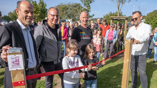 Reckershausen. Zwei präzise Schnitte mit der Schere, und schon war das neue Traumschleifchen „Reckershäuser Busch“ von Hanna und Greta offiziell in Betrieb genommen. Danach ging's über die „Geierlay 2.0“ auf die 5,2 Kilometer lange Wanderstrecke, die sich gut für Familien mit Kindern eignet. Der Spazierweg weist nur wenige Höhenmeter auf, sodass er leicht zu begehen ist.