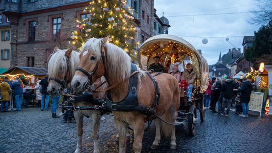 Beliebtes Highlight: Die weihnachtlich geschmückte Pferdekutsche zog zahlreiche Familien durch die Altstadt. Marc Schenten