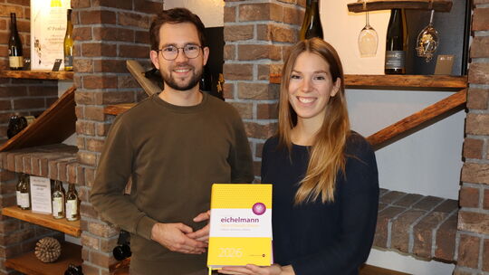 Max und Julia Lambrich vom Weingut Lambrich aus Oberwesel freuen sich über ihre erste Auszeichnung im "Eichelmann Weinguide". Lara Kempf