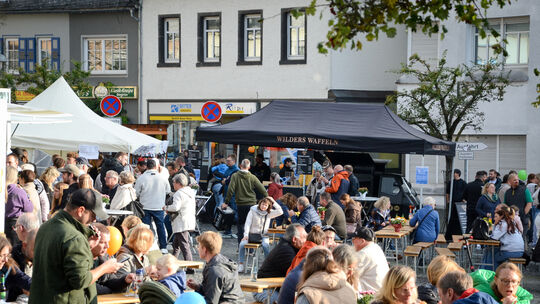 Bis in die Abendstunden tauchte die Herbstsonne den Marktplatz in eine besondere Stimmung, bei der man es sich mit den Leckereien aus der Gastromeile gut gehen lassen konnte. Philipp Lauer