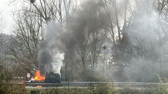 Dicker Qualm zwischen den Ausfahrten Braubach-Nord und -Süd an der Bundesstraße 42. Dort hatte ein Kleintransporter Feuer gefangen.