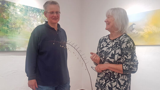 Renate Kuby: Das ist richtig und uns auch wichtig, dass wir die Möglichkeit geben, den Werdeprozess unserer Bilder und Gegenstände nachzuvollziehen. Natürlich ist allen klar, dass ein Bild nicht einfach da ist, doch viele sind erstaunt darüber, wie lange der Prozess dauert, bis ein Bild fertig ist oder wie es entsteht. Der Entstehungsprozess, wie und was zusammenkommt, dass das Bild, das Werk so wird, wie es dann zu sehen ist, wird auch bei unseren Führungen durch die Ausstellung immer wieder nachgefragt.