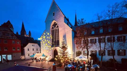 Lichterglanz vor der Stadtkirche am Bischofsplatz: Der Limburger Christkindlmarkt hat eröffnet und hält für seine Besucher bis zum 31. Dezember allerhand Festliches bereit. Anette in Concas